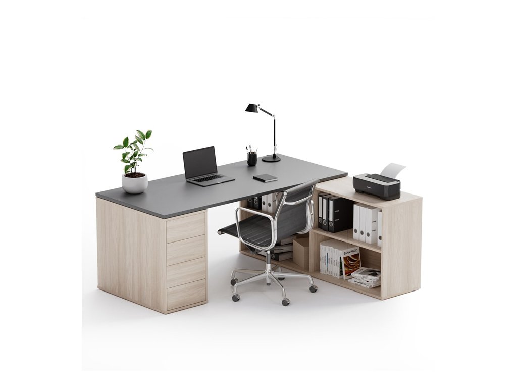 Kancelářský psací stůl s úložným prostorem BLOCK B04, dub přírodní/grafit