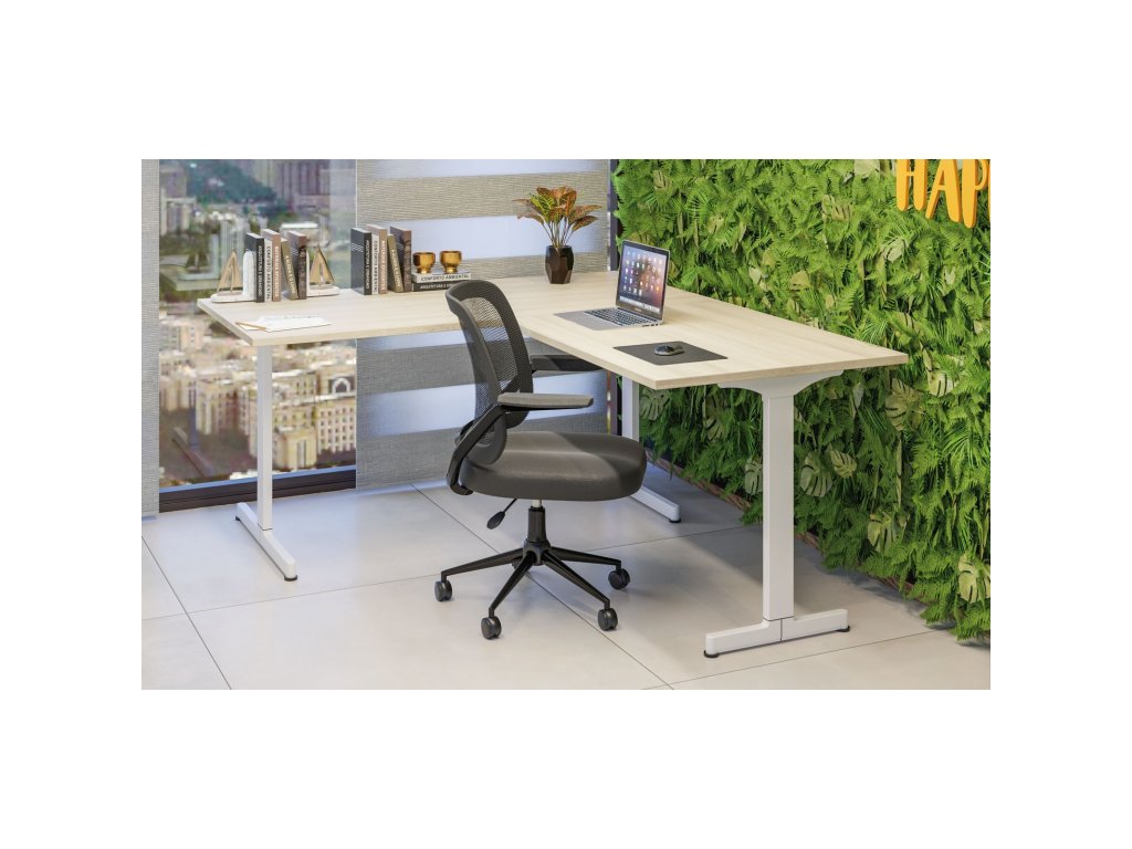 Rohovým kancelářským psacím stolům BETA L dominují 3 robustní kovové nohy z ocelových profilů ve tvaru obráceného písmene T. Podnož tohoto typu nejen, že díky rovnoměrnému rozložení hmotnosti ve spodní části zvyšuje pevnost a stabilitu stolu, ale svým minimalistickým provedením působí odlehčeným a vzdušným dojmem. Nosnost stolu činí až 120 kg.