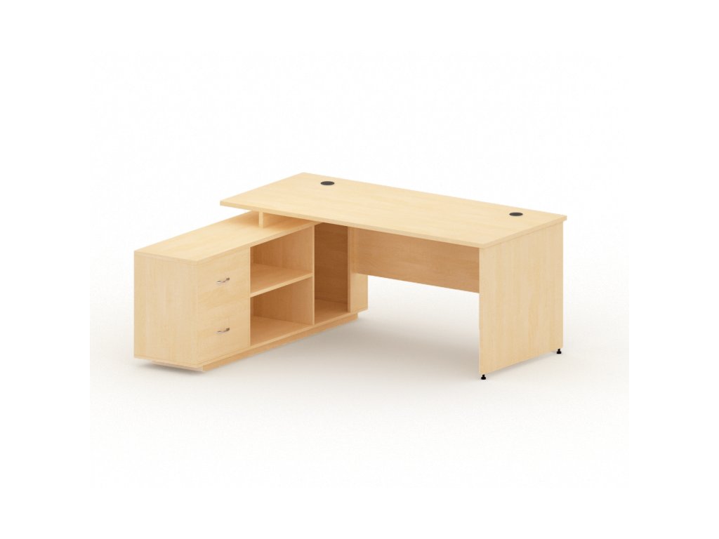 Kancelářský stůl se skříňkou MIRELLI je praktickým pomocníkem při ukládání pracovních dokumentů. Propojením stolu a skříňky vzniká nejen přidaná odkládací plocha, ale i spousta úložného prostoru. Propojená skříňka obsahuje 2 otevřené police i 2 zásuvky na kovových kuličkových pojezdech doplněná o kvalitní madla z leštěného hliníku.