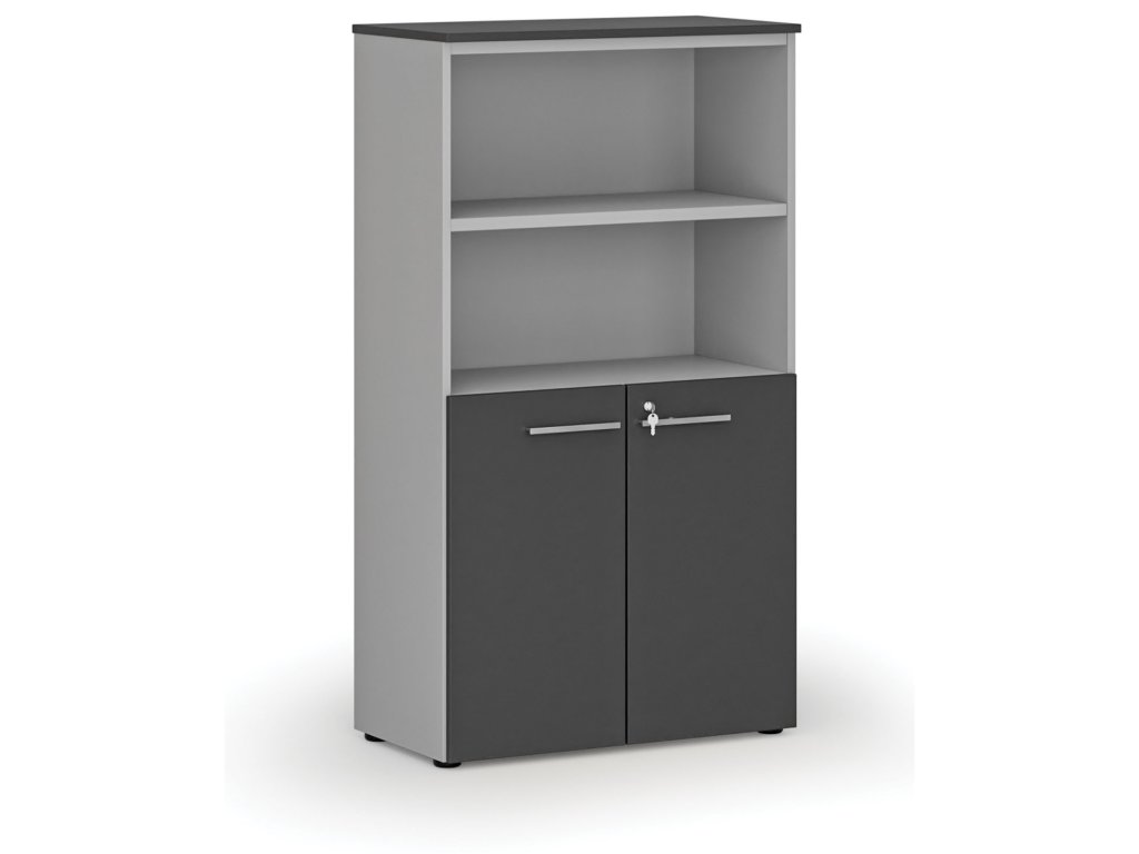 Kombinovaná kancelářská skříň PRIMO GRAY, dveře na 2 patra, 800 x 420 x 1434 mm, šedá/grafit