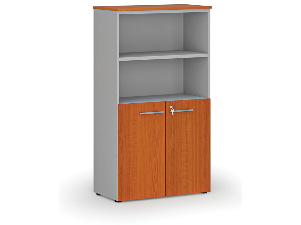 Kombinovaná kancelářská skříň PRIMO GRAY, dveře na 2 patra, 800 x 420 x 1434 mm, šedá/třešeň