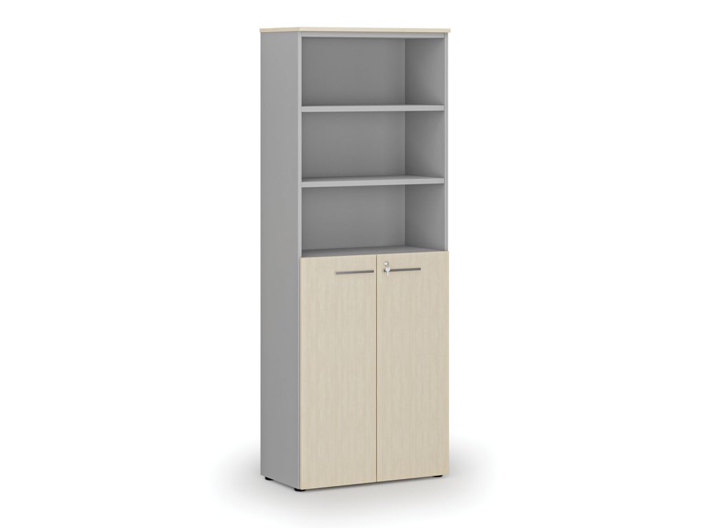 Kombinovaná kancelářská skříň PRIMO GRAY, dveře na 3 patra, 800 x 420 x 2128 mm, šedá/bříza