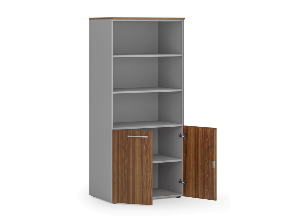 Kombinovaná kancelářská skříň PRIMO GRAY, nízké dveře, 800 x 500 x 1781 mm, šedá/ořech