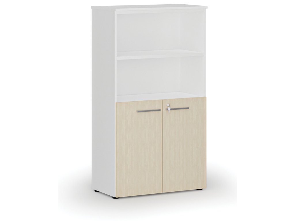 Kombinovaná kancelářská skříň PRIMO WHITE, dveře na 2 patra, 800 x 420 x 1434 mm, bílá/bříza