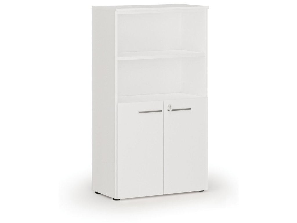 Kombinovaná kancelářská skříň PRIMO WHITE, dveře na 2 patra, 800 x 420 x 1434 mm, bílá
