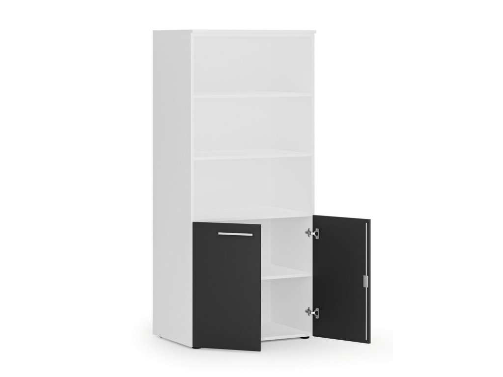 Kombinovaná kancelářská skříň PRIMO WHITE, nízké dveře, 800 x 500 x 1781 mm, bílá/grafit