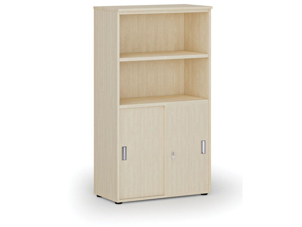 Kombinovaná kancelářská skříň PRIMO WOOD, zasouvací dveře na 2 patra, 800 x 420 x 1434 mm, bříza