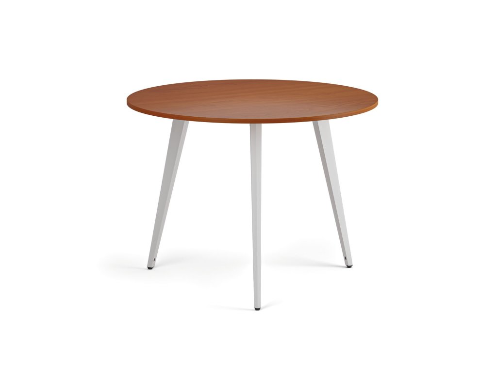 Konferenční stůl PRIMO VIBE, průměr 100 cm, bílá podnož, třešeň