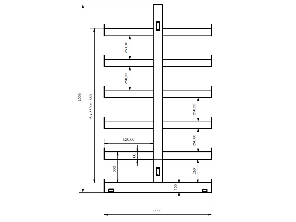 Oboustranný konzolový regál je ideálním řešením pro přehledné a bezpečné skladování dlouhých materiálů, jako jsou trubky, profily, hranoly a další těžké kusy. Robustní ocelová konstrukce s práškovým lakováním zajišťuje dlouhou životnost a odolnost vůči mechanickému poškození i korozi.