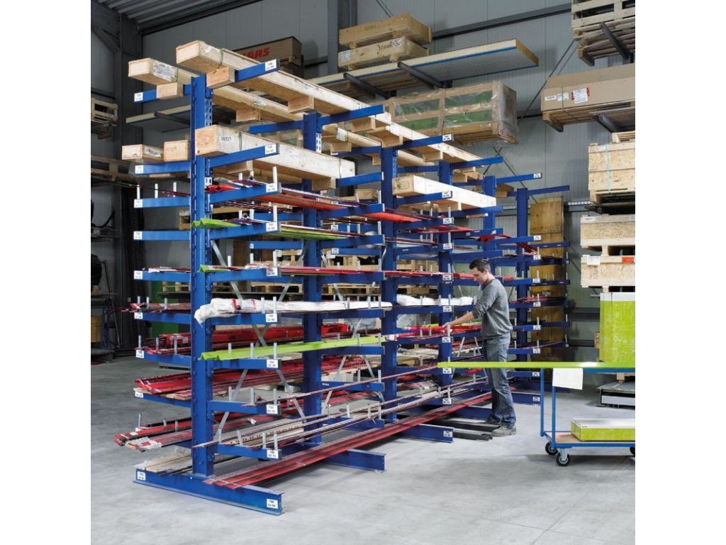 - konzolové regály slouží zejména pro skladování těžkých a dlouhých předmětů jako jsou trubky, latě, desky, apod.