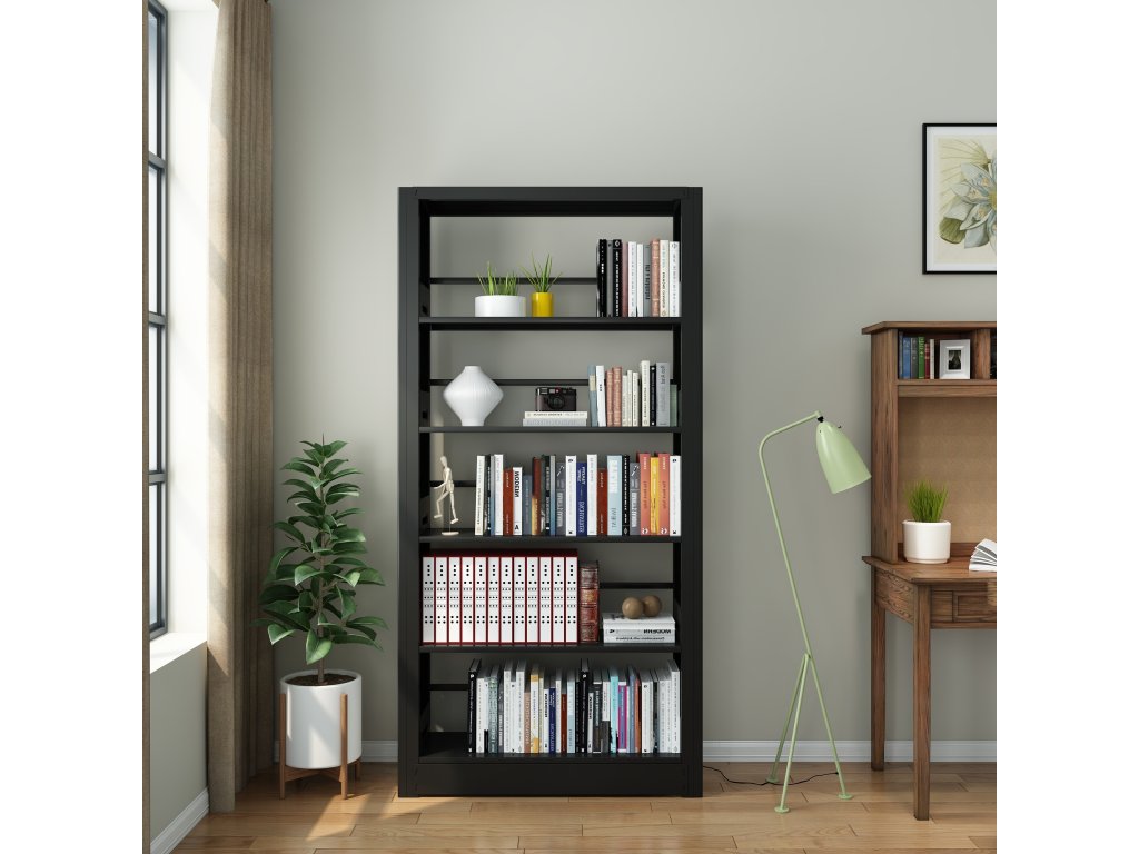 - Kovová knihovna v černém provedení