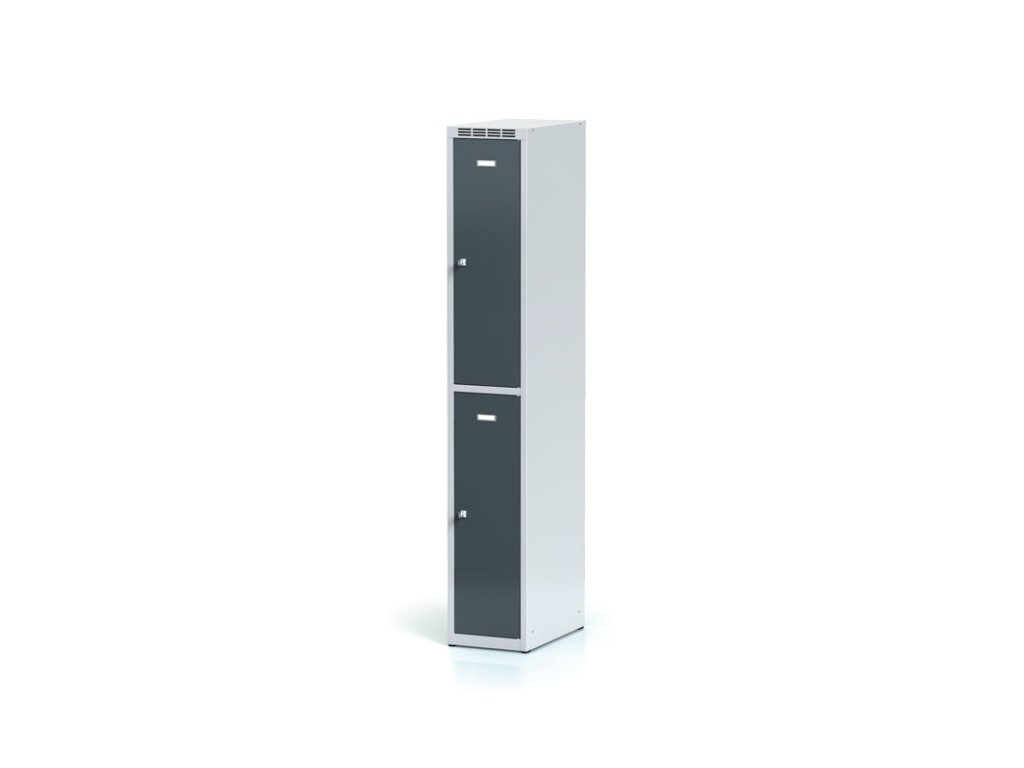 Kovová šatní skříňka s úložnými boxy, 2 boxy, 1800 x 300 x 500 mm, otočný zámek, tmavě šedé dveře