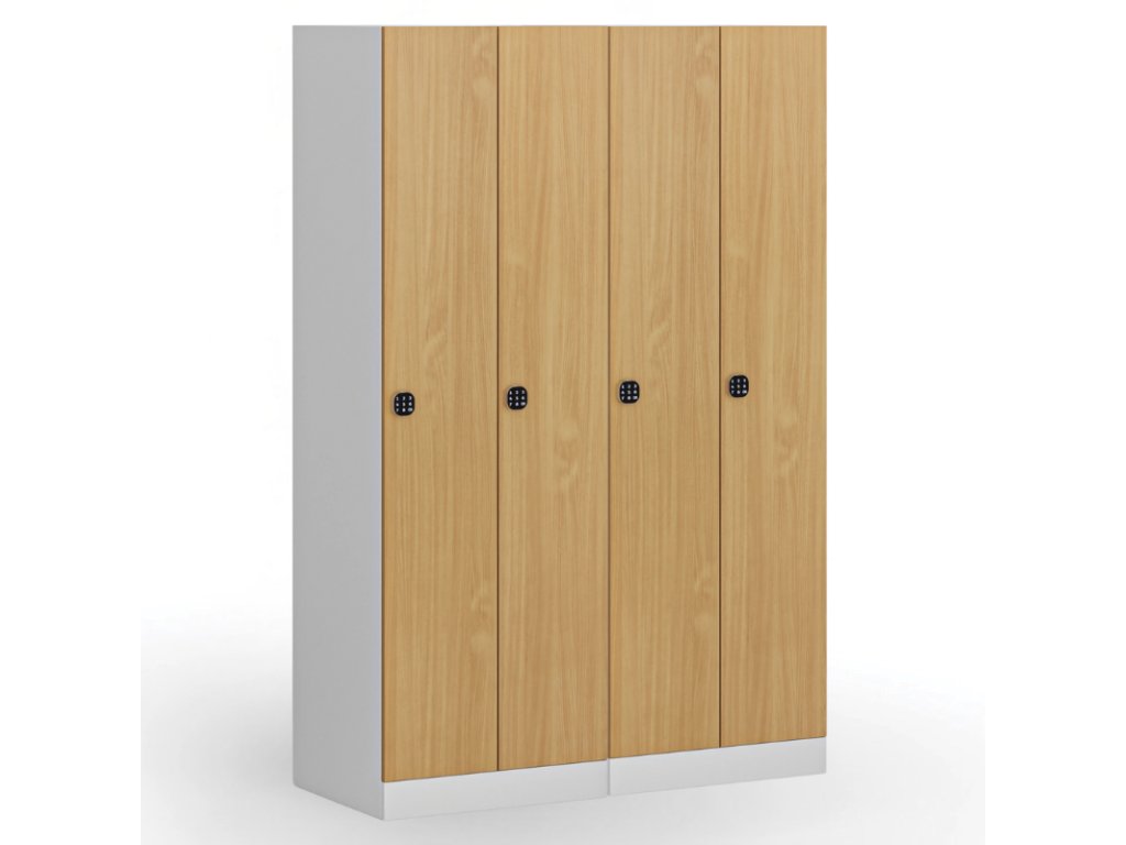Kovová šatní skříňka S1, 2 oddíly, 1850 x 600 x 500 mm, demont, kódový zámek, laminované dveře, dub přírodní