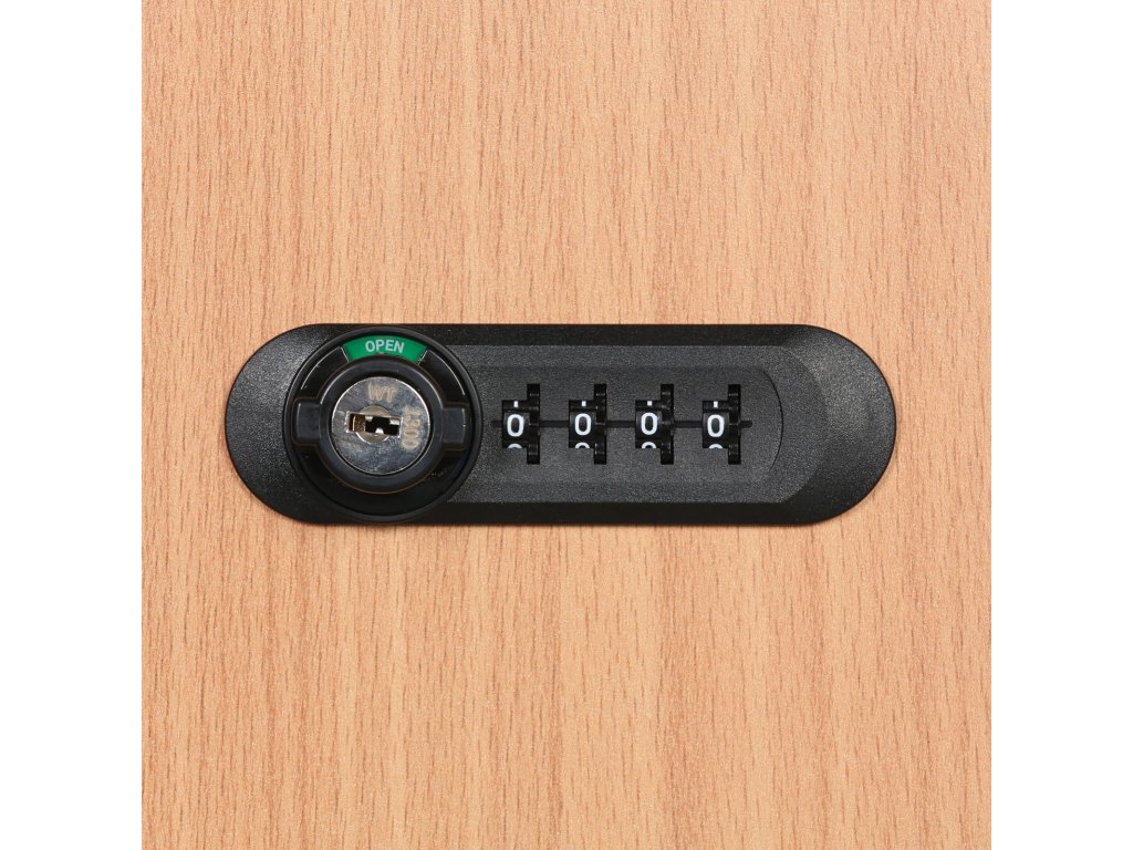 Kovová šatní skříňka, 2 oddíly, 1850 x 600 x 500 mm, demont, mechanický kódový zámek, laminované dveře, bříza