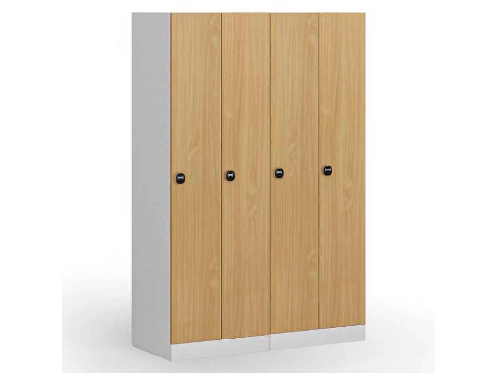 Kovová šatní skříňka S1, 2 oddíly, 1850 x 600 x 500 mm, demont, RFID zámek, laminované dveře, buk
