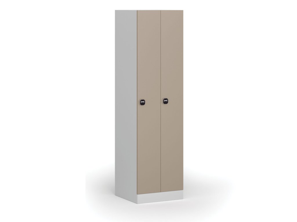 Zúžená kovová šatní skříňka, 2 oddíly, 1850 x 500 x 500 mm, demont, RFID zámek, béžové dveře