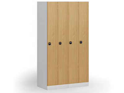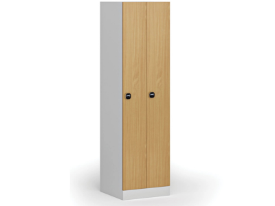 Zúžená kovová šatní skříňka, 2 oddíly, 1850 x 500 x 500 mm, demont, RFID zámek, laminované dveře, buk