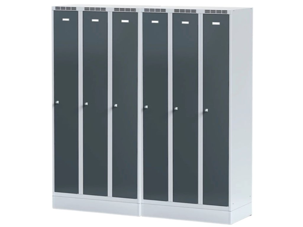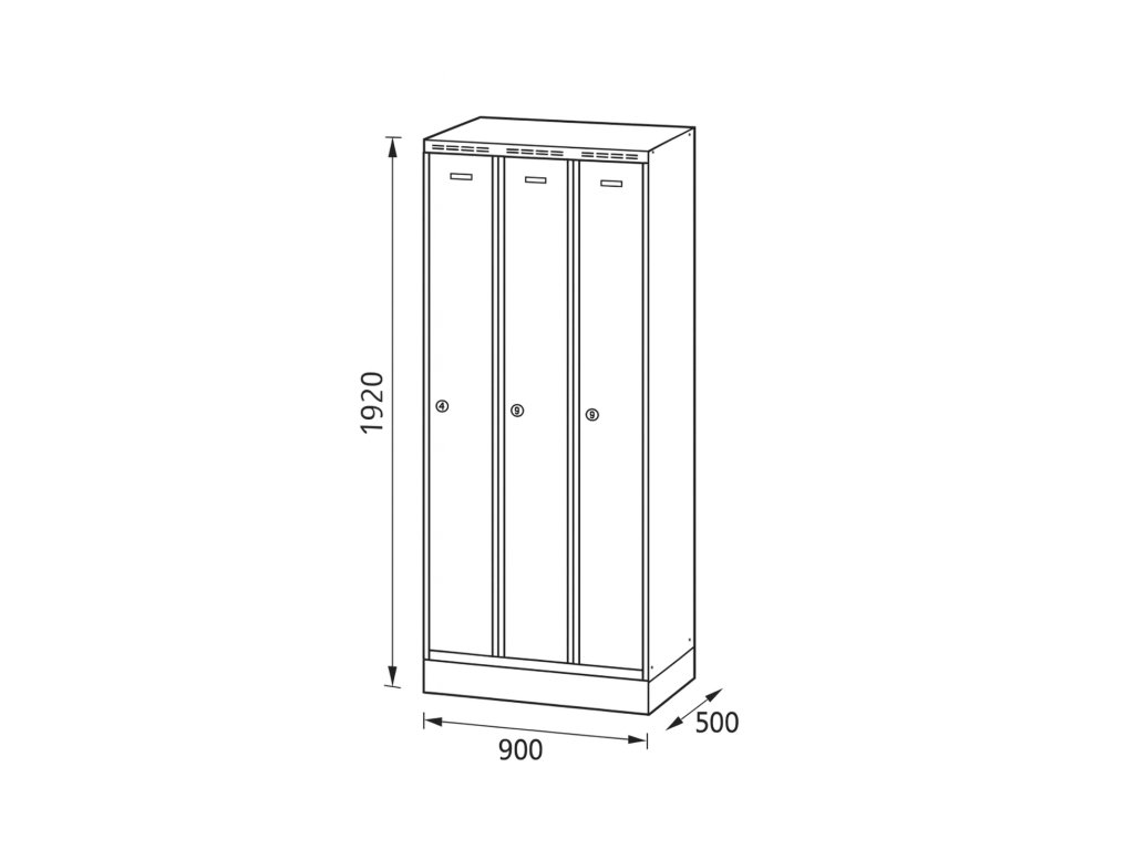 Skříňku tvoří 3 samostatné části o standardní šířce oddílu 300 mm, které jsou umístěny v jednom společném korpusu. Oproti klasické variantě nabízí ještě jedno místo navíc. Šetří tak nejen místo v šatně, ale i náklady, aniž by bylo sníženo pohodlí uživatelů. Ideální pro školy, sportoviště i zázemí s více uživateli a omezeným prostorem.
