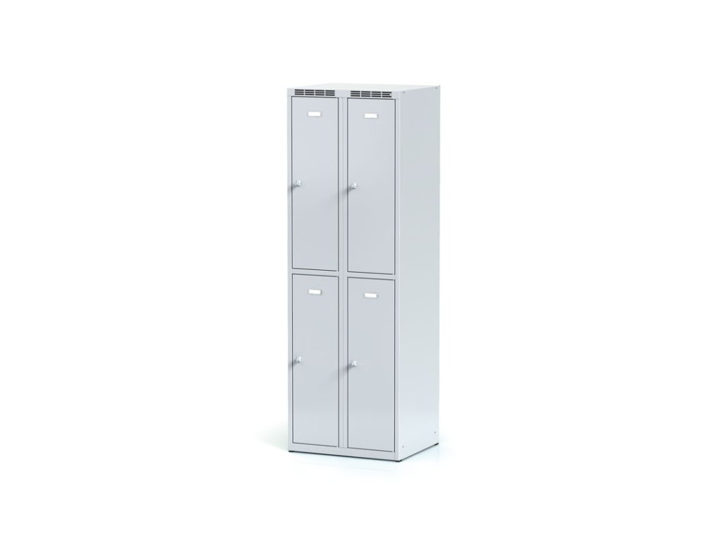 Skříňku s šířkou 300 mm tvoří 4 uzamykatelné boxy. Každý box poskytuje dostatek místa pro uložení osobních věcí, batohů či tašek. Toto úsporné a přitom bezpečné, uzamykatelné řešení je ideální všude tam, kde je potřeba šetřit místem a zároveň není nutné zavěšovat delší oděvy.