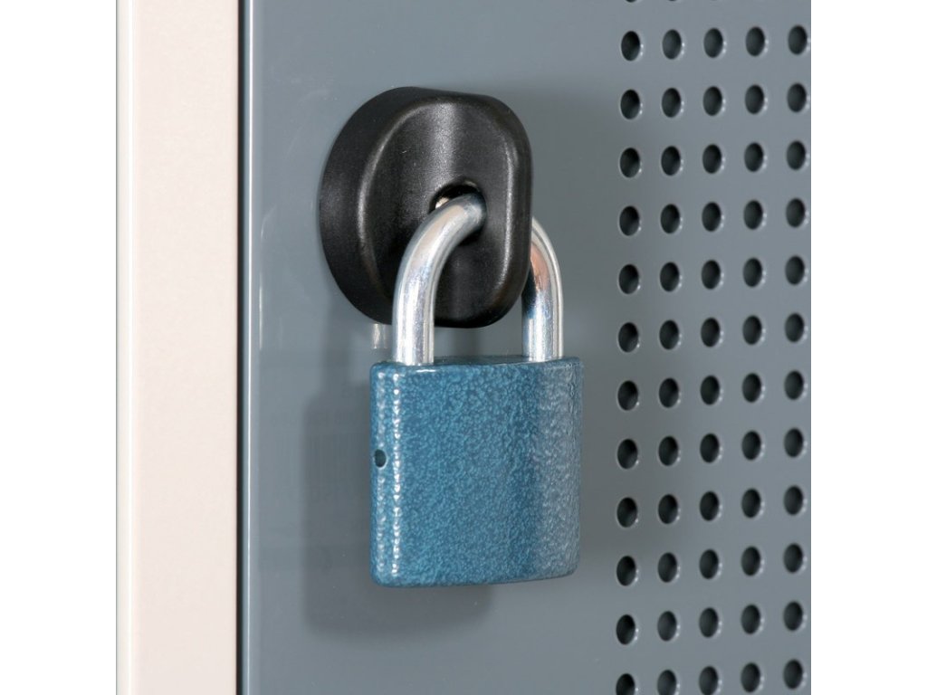 Dveře snadno uzamknete pomocí otočného zámku, do kterého lze umístit běžný visací zámek (kladku). Ideální řešení do prostředí s častým střídáním osob, které nevyžaduje správu klíčů. Každý uživatel skříňku uzamkne svým vlastním zámkem.