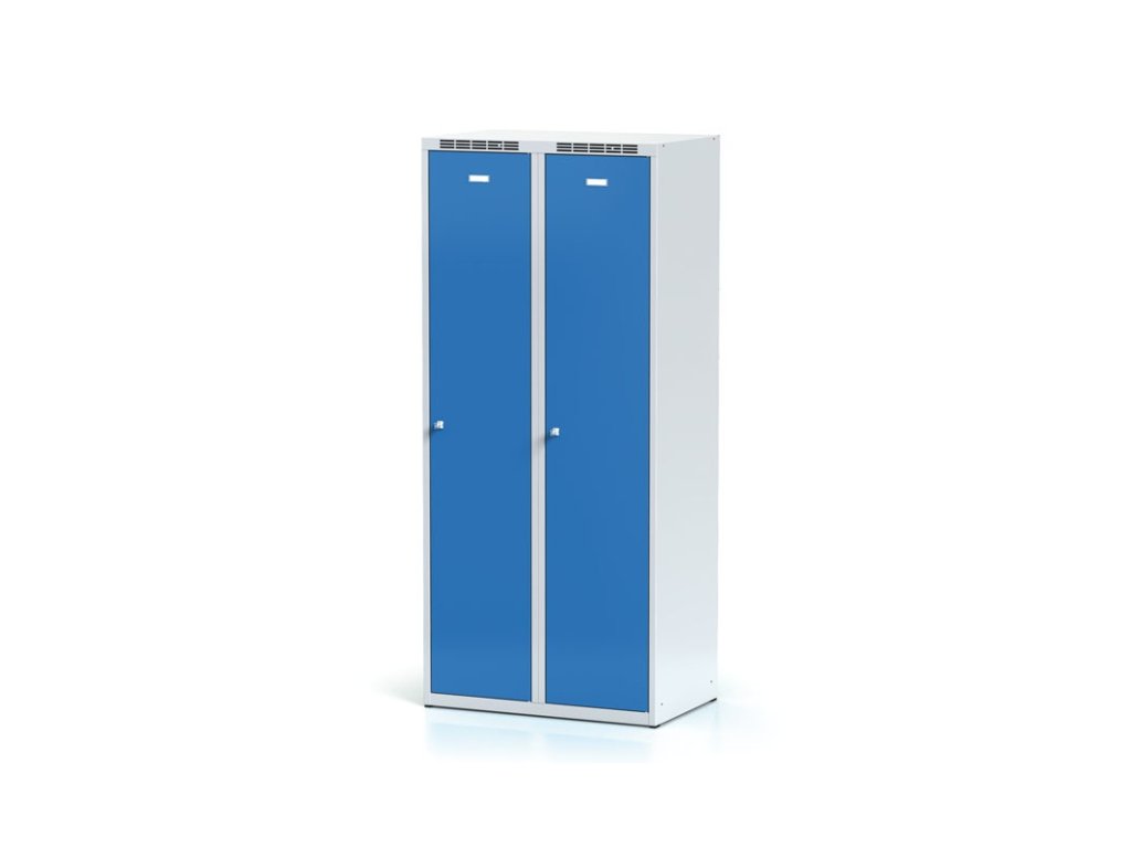 Kovová šatní skříňka S6 s mezistěnou, 2 oddíly, 1800 x 800 x 500 mm, cylindrický zámek, modré dveře