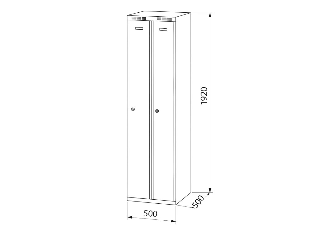 Skříňku tvoří 2 části o šířce oddílu 250 mm. Zúžené provedení je ideální tam, kde je potřeba šetřit místem – například v úzkých chodbách, předsíních nebo menších šatnách. Přesto poskytuje dostatek prostoru pro uložení osobních věcí i běžného oblečení.
