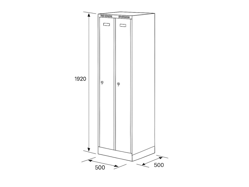 Skříňku tvoří 2 části o šířce oddílu 250 mm. Zúžené provedení je ideální tam, kde je potřeba šetřit místem – například v úzkých chodbách, předsíních nebo menších šatnách. Přesto poskytuje dostatek prostoru pro uložení osobních věcí i běžného oblečení.