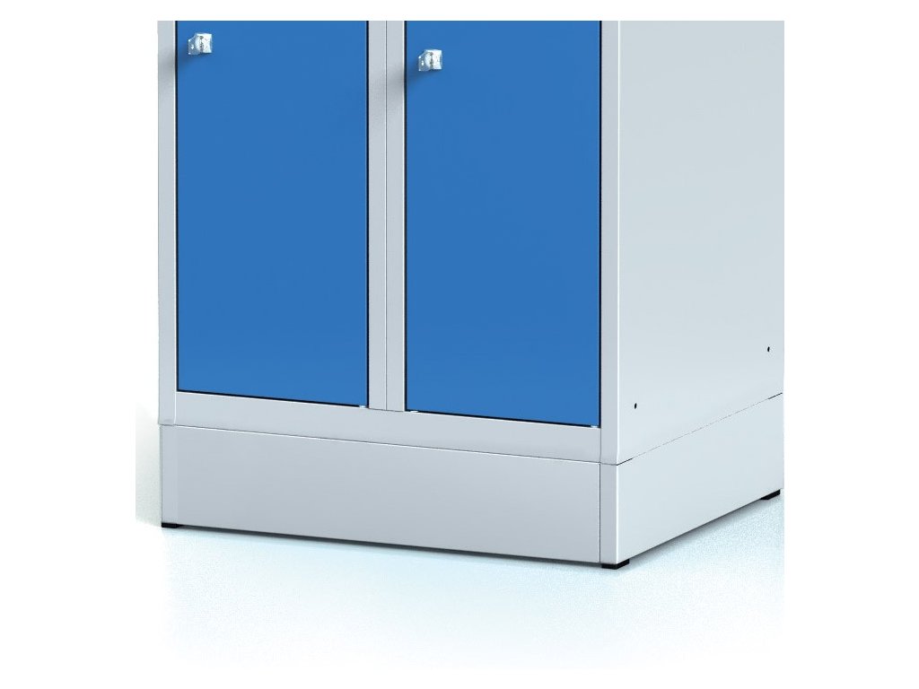 Zúžená kovová šatní skříňka S6 na soklu, 2 oddíly, 1920 x 500 x 500 mm, otočný zámek, červené dveře