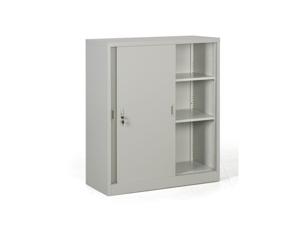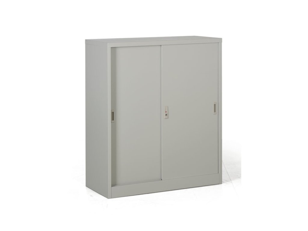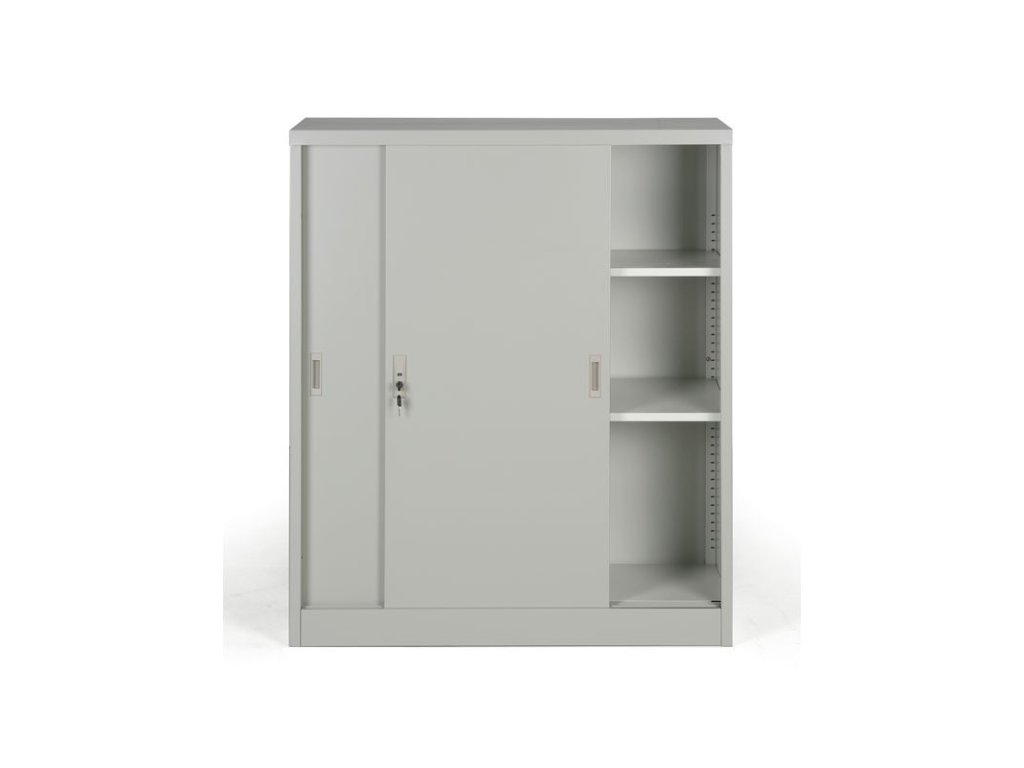 Kovová skříň s posuvnými dveřmi, 2 police, 1000 x 1200 x 450 mm, světle šedá