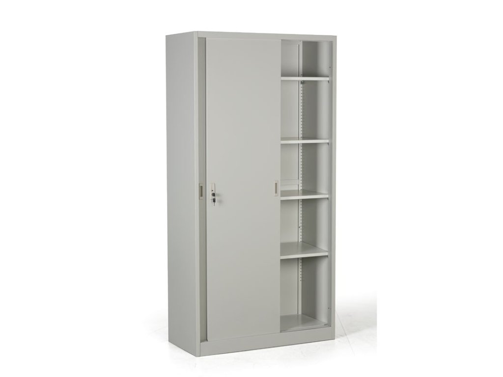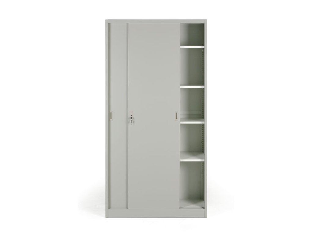 Kovová skříň s posuvnými dveřmi, 4 police, 1000 x 1990 x 450 mm, světle šedá