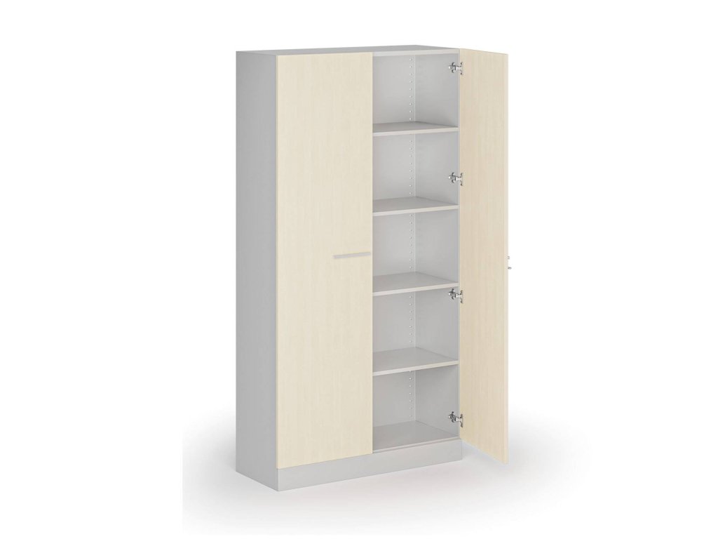 Kovová spisová skříň s dřevěnými dveřmi, demontovaná, 1950 x 1000 x 400 mm, bříza