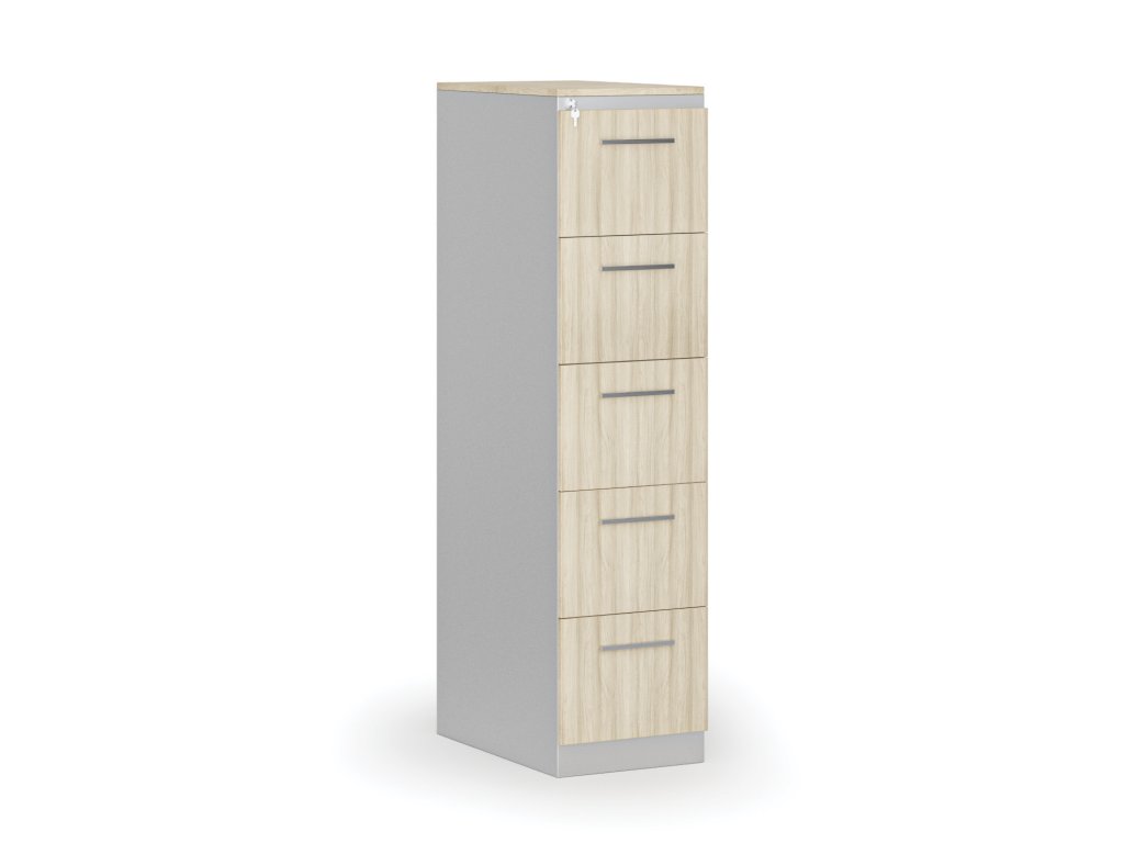 Kovová zásuvková kartotéka PRIMO s dřevěnými čely A4, 5 zásuvek, šedá/dub přírodní