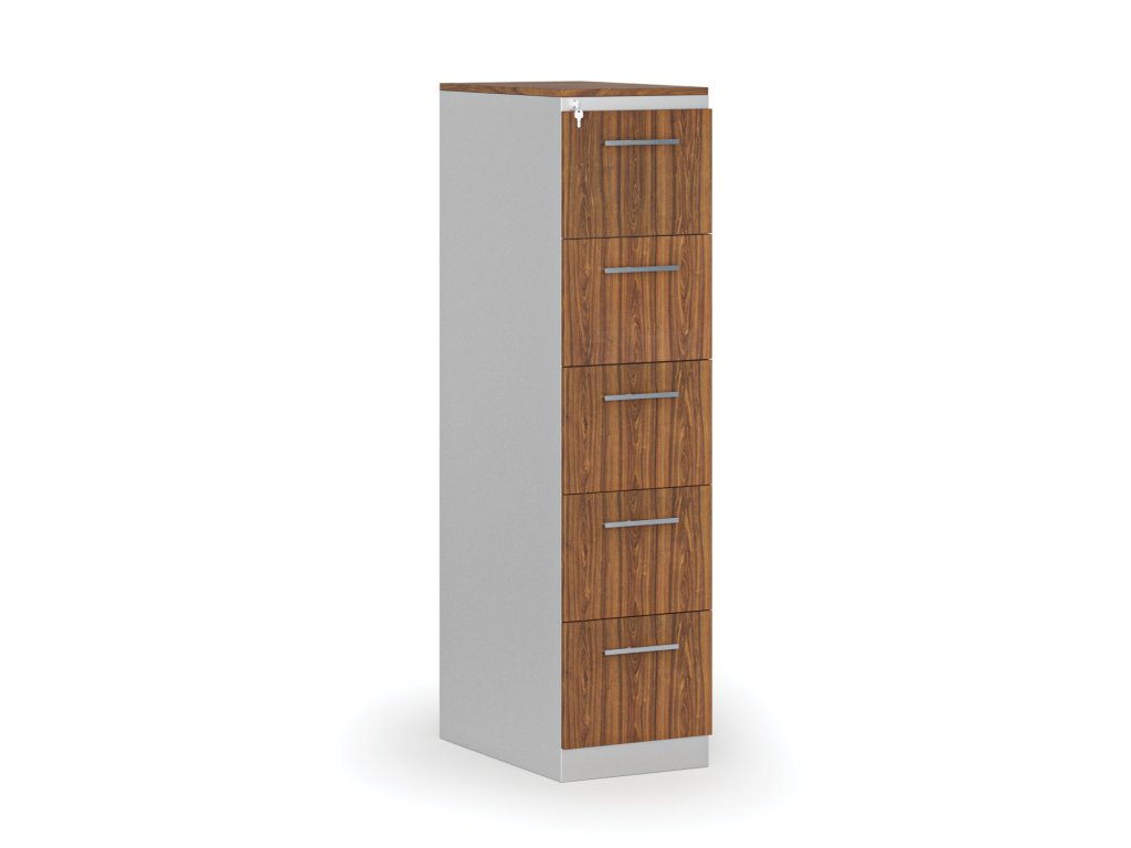 Kovová zásuvková kartotéka PRIMO s dřevěnými čely A4, 5 zásuvek, šedá/ořech