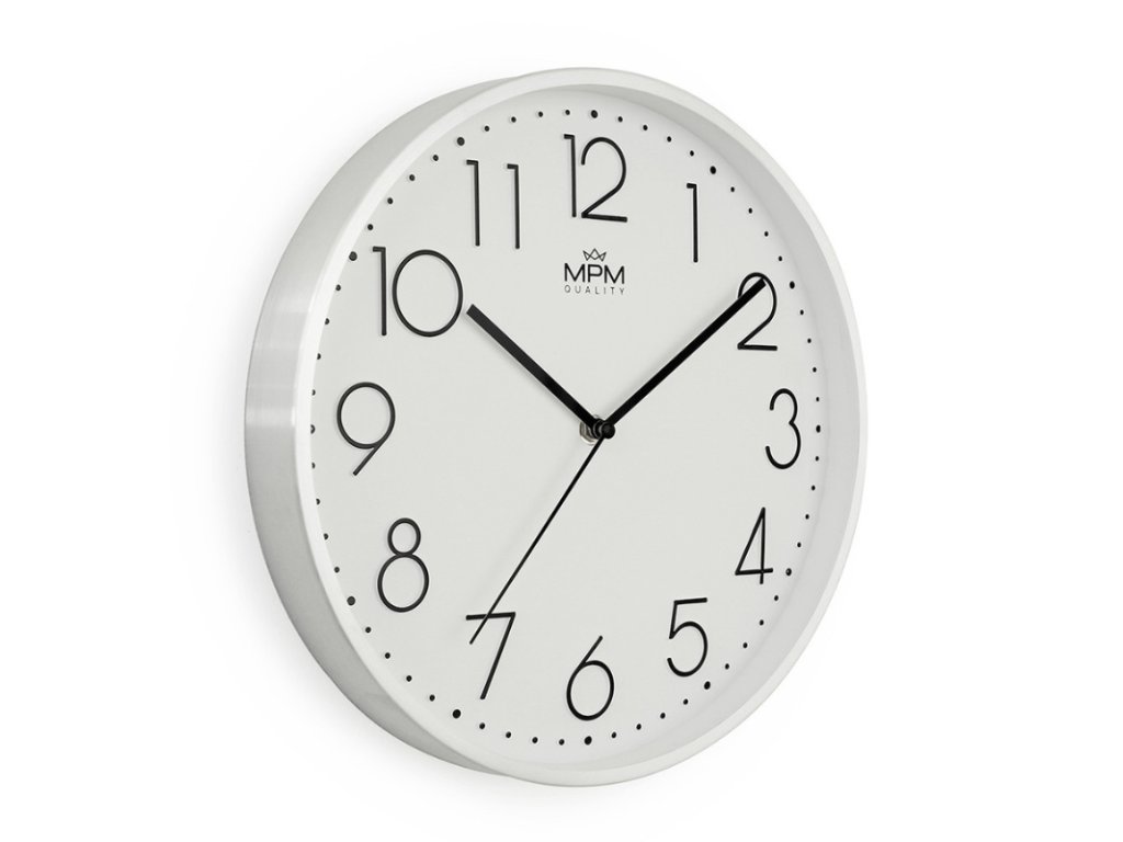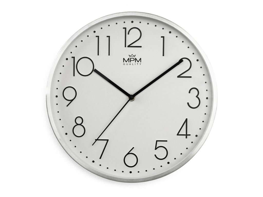 Kovové hodiny bílé MPM Metallic Elegance ? 300 x 40 mm
