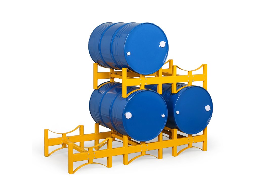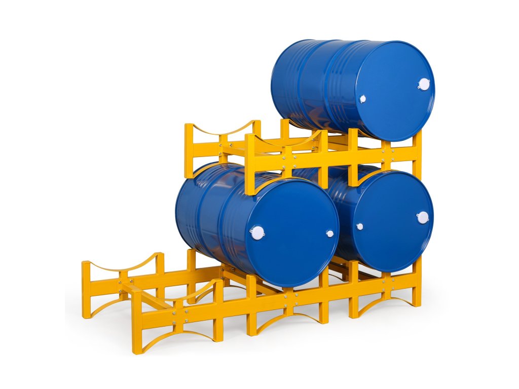 Díky specifickému tvaru držáků zůstávají sudy bezpečně uložené a připravené k manipulaci. Navíc díky stohovatelné konstrukci můžete za použití více stojanů sudy stohovat nad sebe. Tento držák na sudy je perfektní volbou pro průmyslové provozy, sklady s chemikáliemi, oleji či dalšími kapalinami.