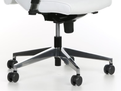 Jednou z nepřehlédnutelných součástí židle je bezesporu elegantní hliníkový kříž, který dodává židli celkovou stabilitu a odolnost. Slouží také jako základna pro uchycení pístu a pojezdových koleček. Diky použité základně, plynovému pístu a mechanice je tento model židle určen pro vysoké zatížení až 150 kg. Povrchová úprava leštěním dodává židli potřebnou eleganci. Píst umožňuje nastavení výšky sedáku v rozsahu 44 - 51 cm.