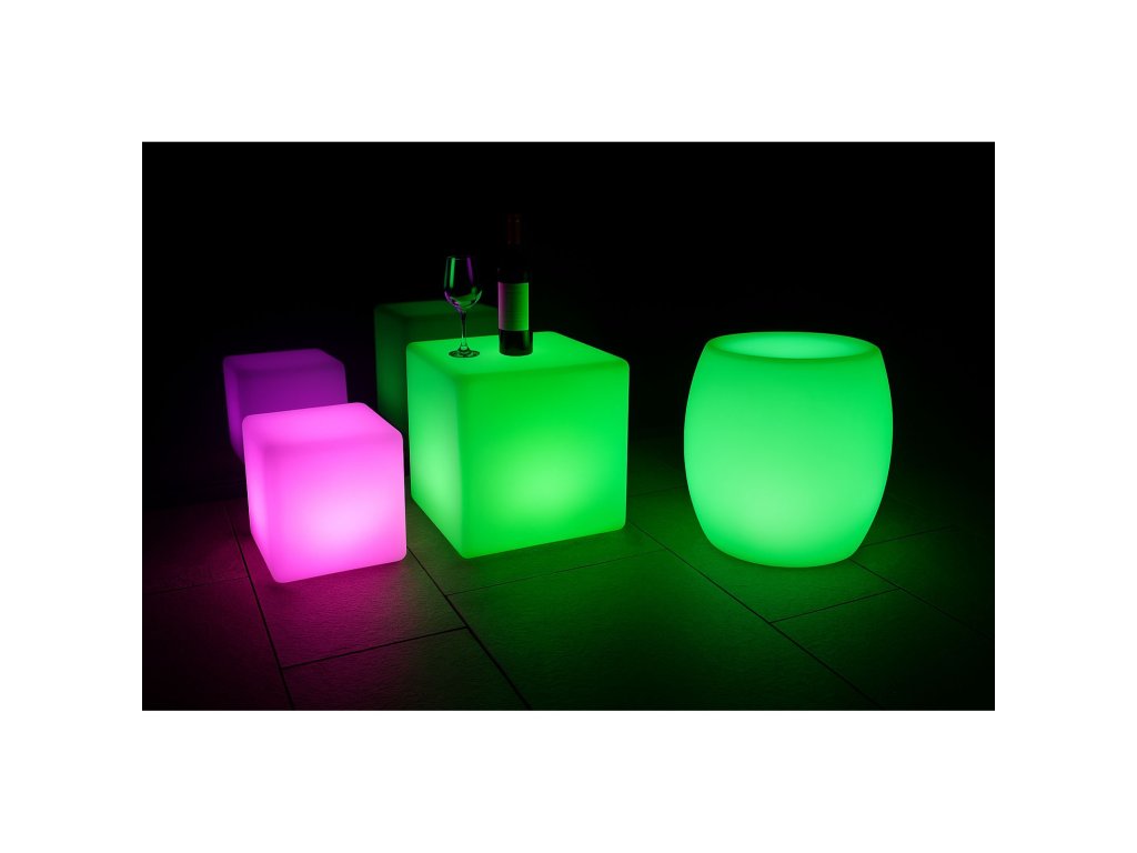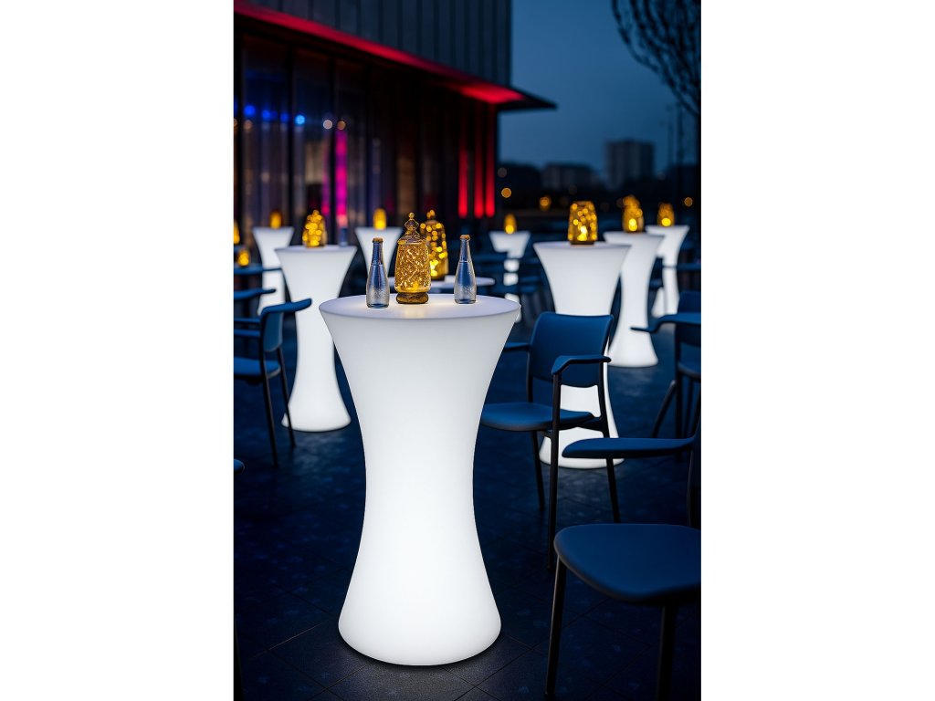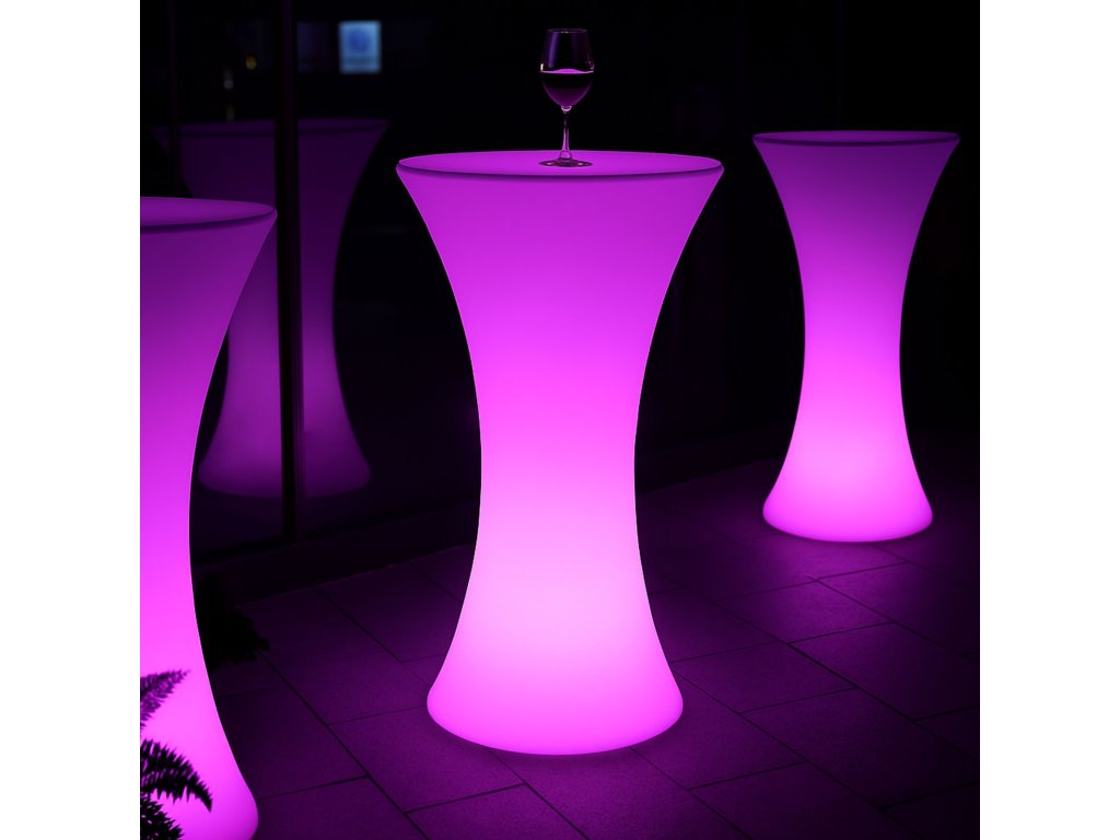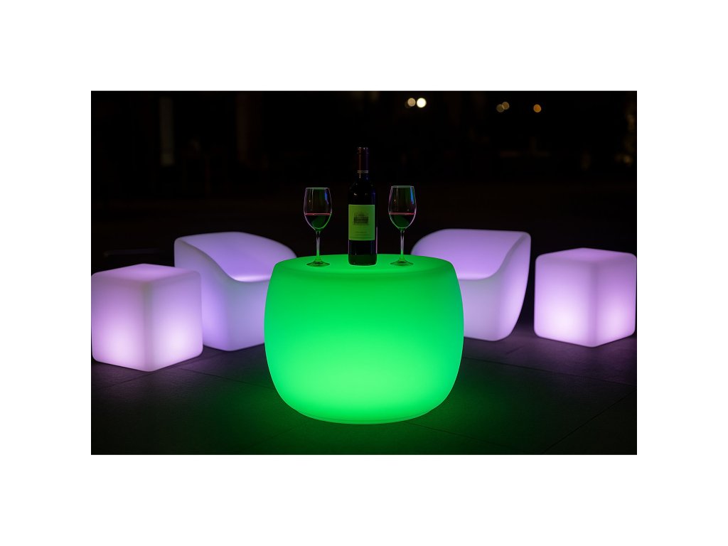 Vneste do svého prostoru styl, barvy a moderní atmosféru díky LED svítícímu barovému nábytku! Tento designový kousek z odolného plastu PE rozzáří interiér i exteriér až 16 různými barvami, které jednoduše ovládáte dálkovým ovladačem. Nechybí také efekty jako blikání, několik typů barevných přechodů (flash, strobe, fade, smooth). Díky dobíjecí baterii, vysoké odolnosti a vodotěsnosti IP65 je tento nábytek ideální volbou nejen do domácností, ale i pro komerční využití – do barů, hotelů, na zahradní party nebo třeba do showroomů.