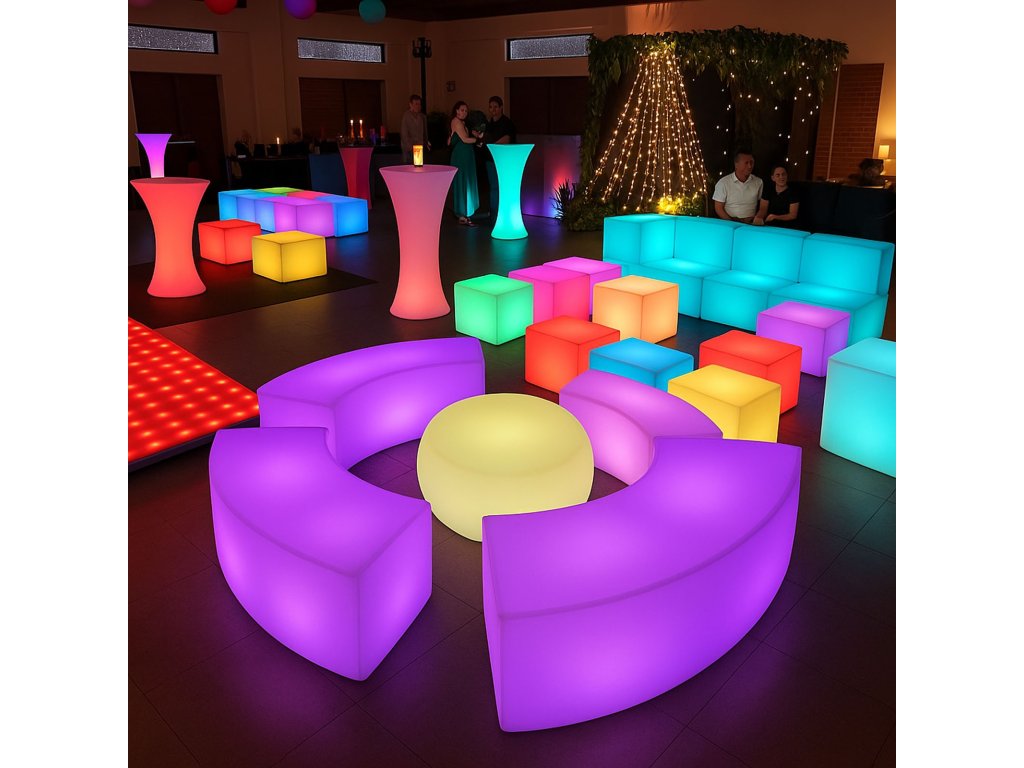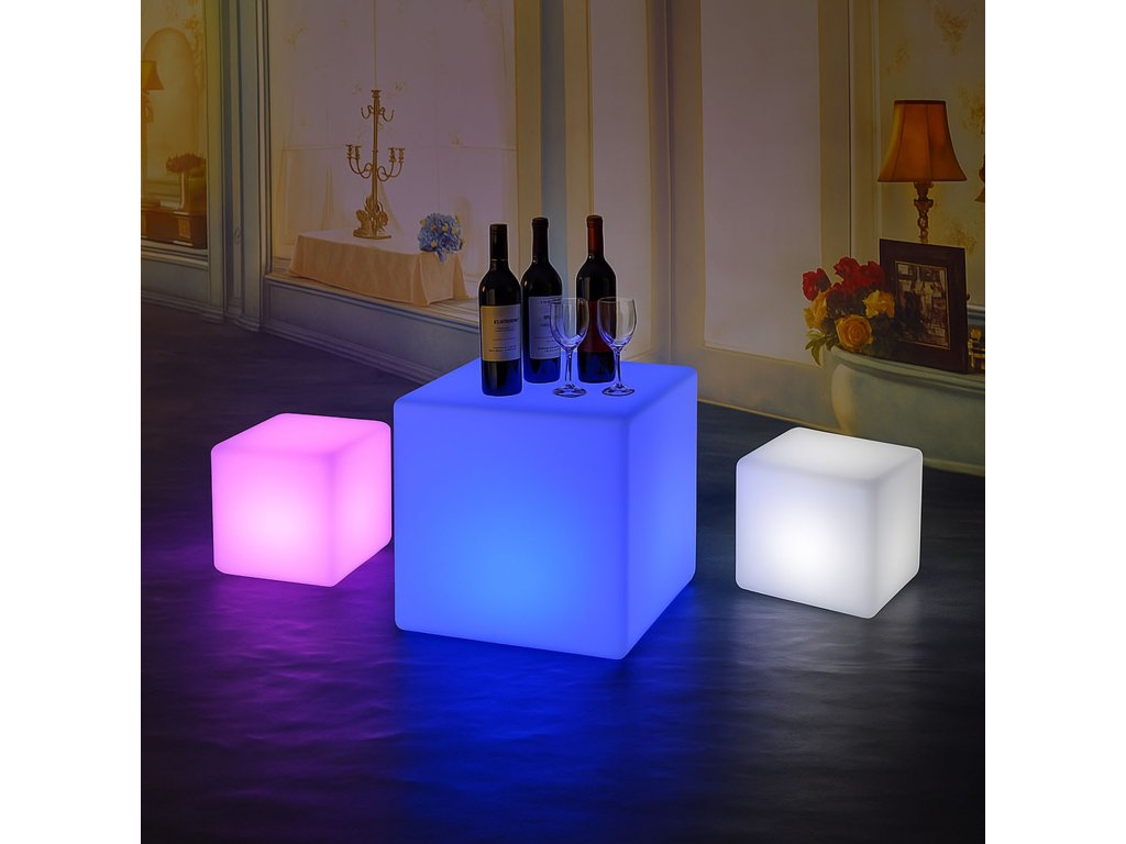 Vneste do svého prostoru styl, barvy a moderní atmosféru díky LED svítícímu barovému nábytku! Tento designový kousek z odolného plastu PE rozzáří interiér i exteriér až 16 různými barvami, které jednoduše ovládáte dálkovým ovladačem. Nechybí také efekty jako blikání, několik typů barevných přechodů (flash, strobe, fade, smooth). Díky dobíjecí baterii, vysoké odolnosti a vodotěsnosti IP65 je tento nábytek ideální volbou nejen do domácností, ale i pro komerční využití – do barů, hotelů, na zahradní party nebo třeba do showroomů.