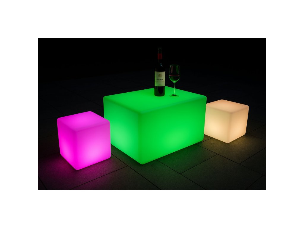 LED svítící taburet, 40 x 40 x 40 cm
