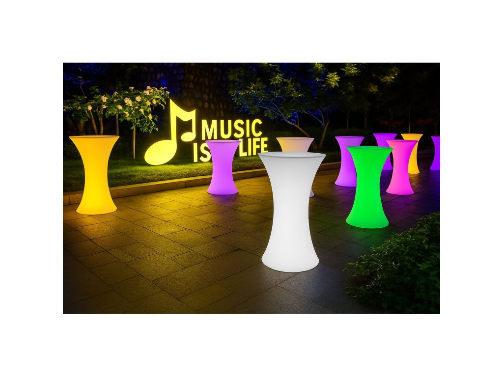 Vneste do svého prostoru styl, barvy a moderní atmosféru díky LED svítícímu barovému nábytku! Tento designový kousek z odolného plastu PE rozzáří interiér i exteriér až 16 různými barvami, které jednoduše ovládáte dálkovým ovladačem. Nechybí také efekty jako blikání, několik typů barevných přechodů (flash, strobe, fade, smooth). Díky dobíjecí baterii, vysoké odolnosti a vodotěsnosti IP65 je tento nábytek ideální volbou nejen do domácností, ale i pro komerční využití – do barů, hotelů, na zahradní party nebo třeba do showroomů.