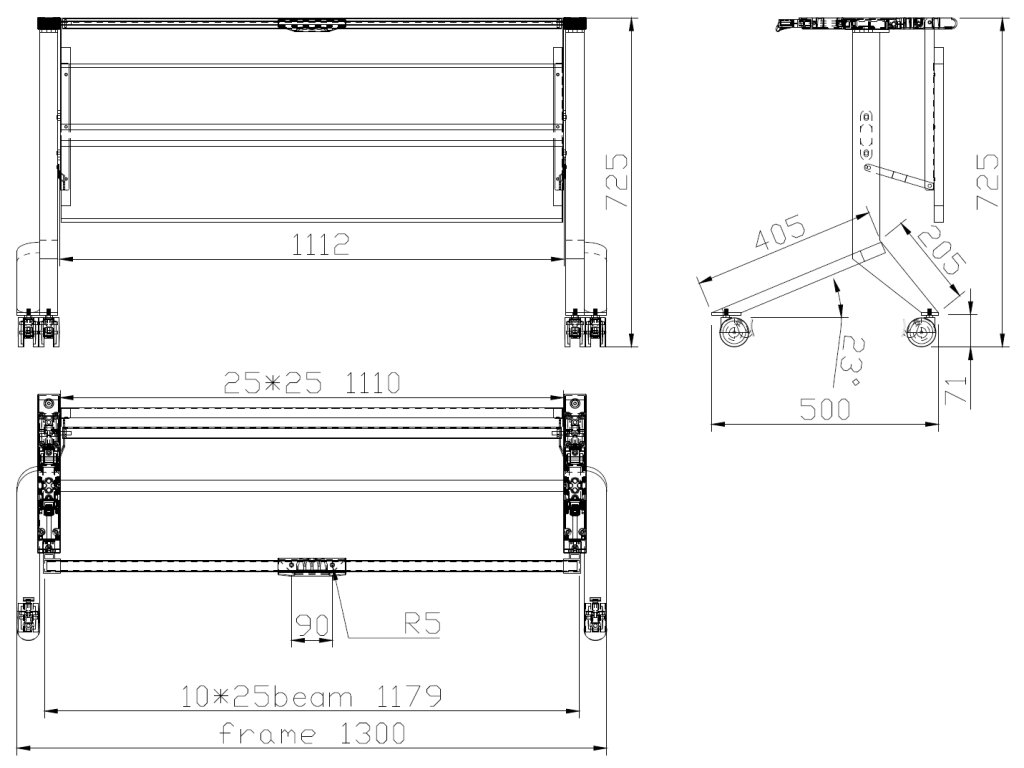- podnož stolů z ocelových profilů s kolečky pro snadné přemisťování