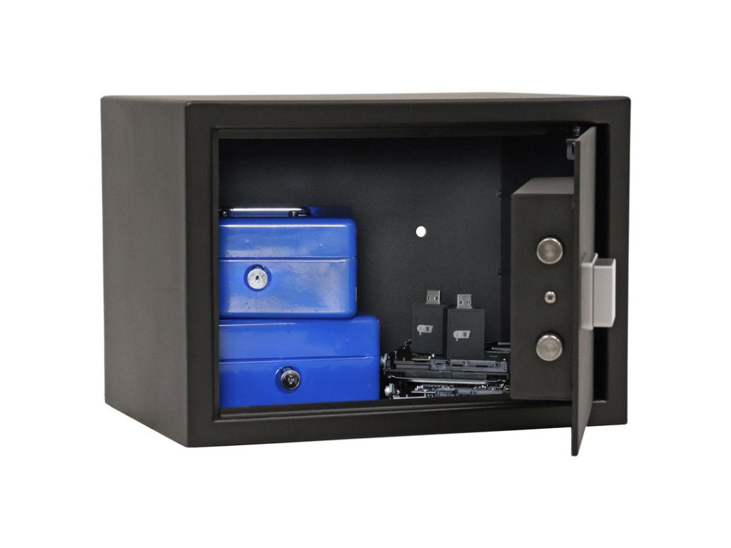 - sejf disponující elektronickým bluetooth zámkem pro bezpečnou úschovu malých cenností, cestovních dokladů nebo dokumentů