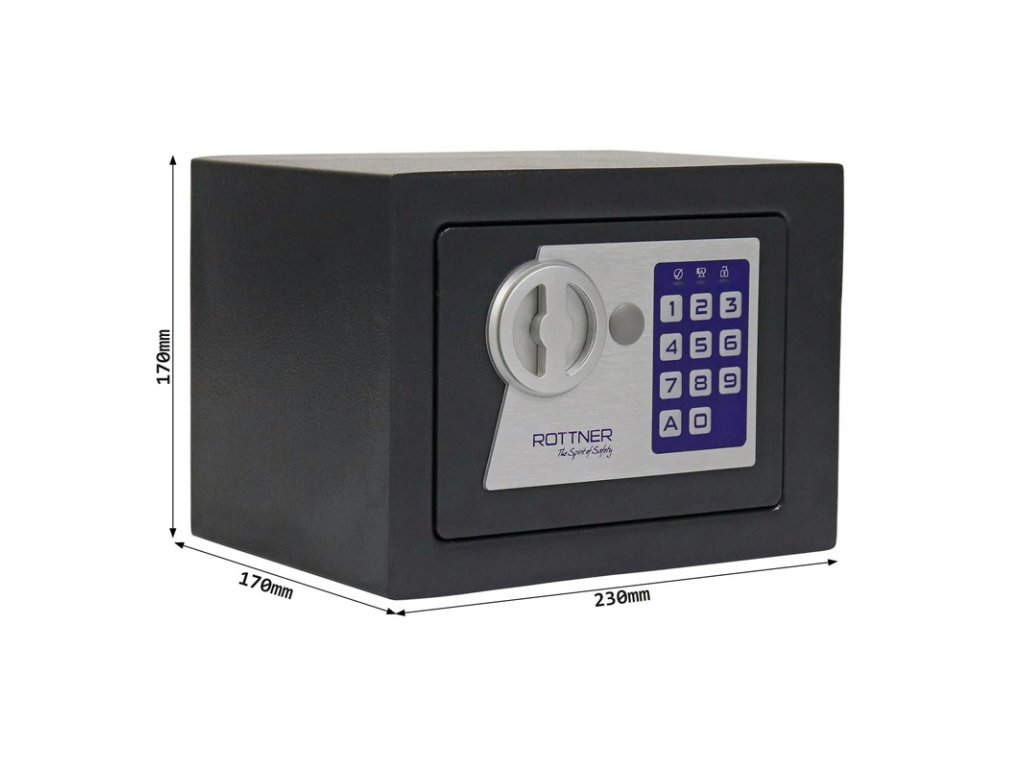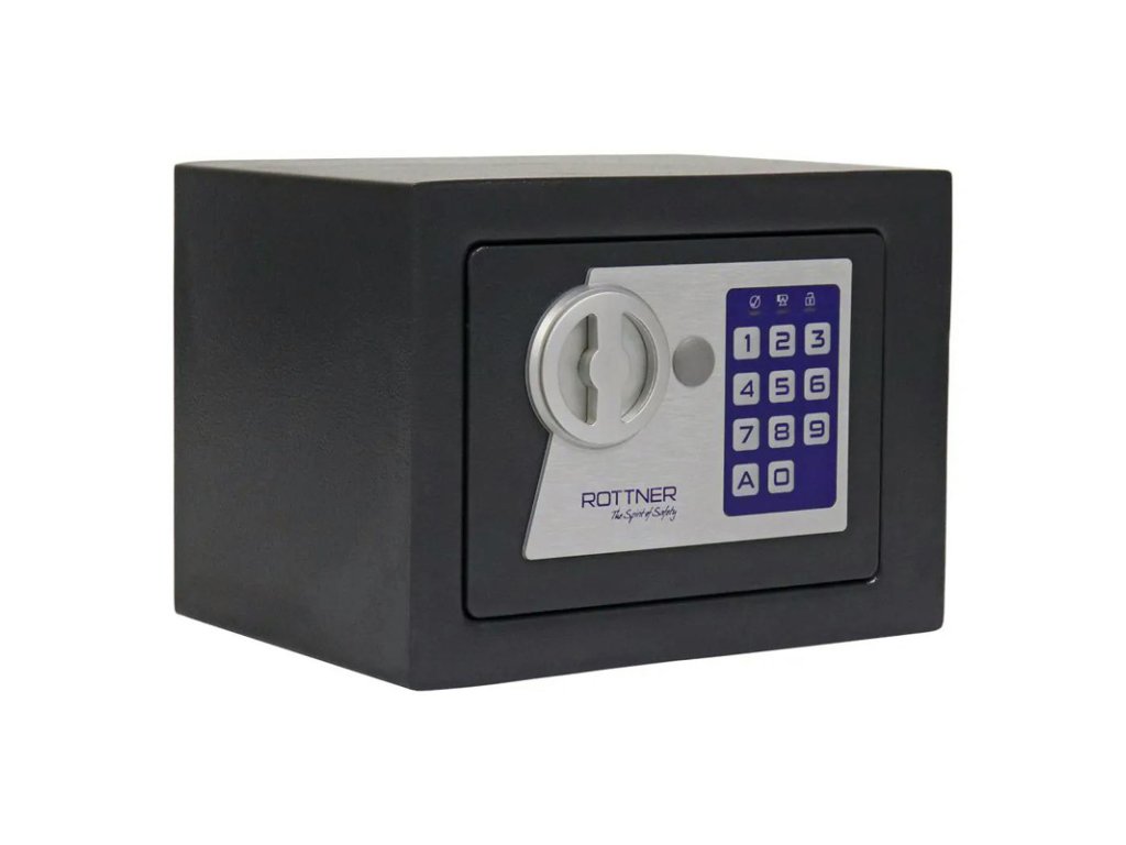 - jednoplášťový sejf z kvalitní oceli a elektronickým zámkem