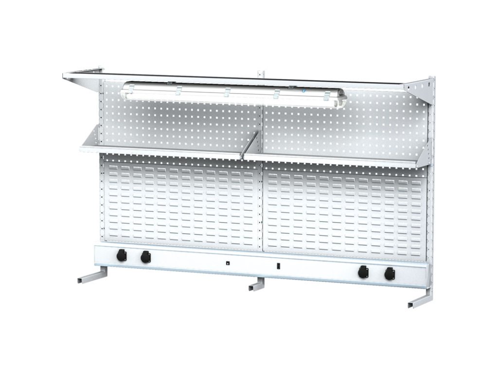 Nástavba na stůl MECHANIC 2000 mm, děrovaný plech na nářadí, 1 police, 1 energokanál