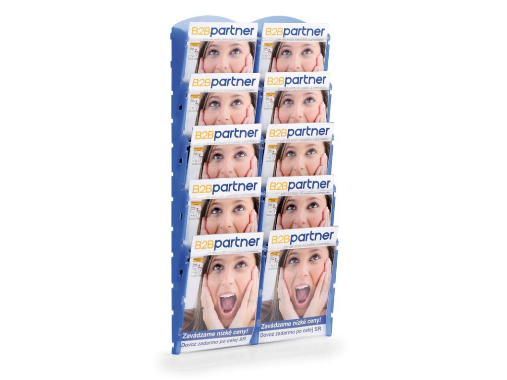 Nástěnný plastový zásobník na prospekty - 2 x 5 A5, modrý