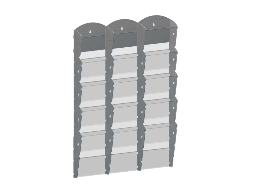 Nástěnný plastový zásobník na prospekty - 3 x 5 A5, šedý