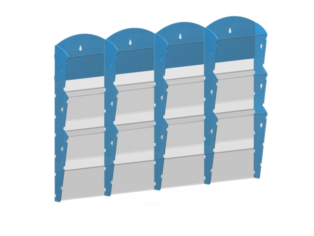 Nástěnný plastový zásobník na prospekty - 4 x 3 A5, modrý