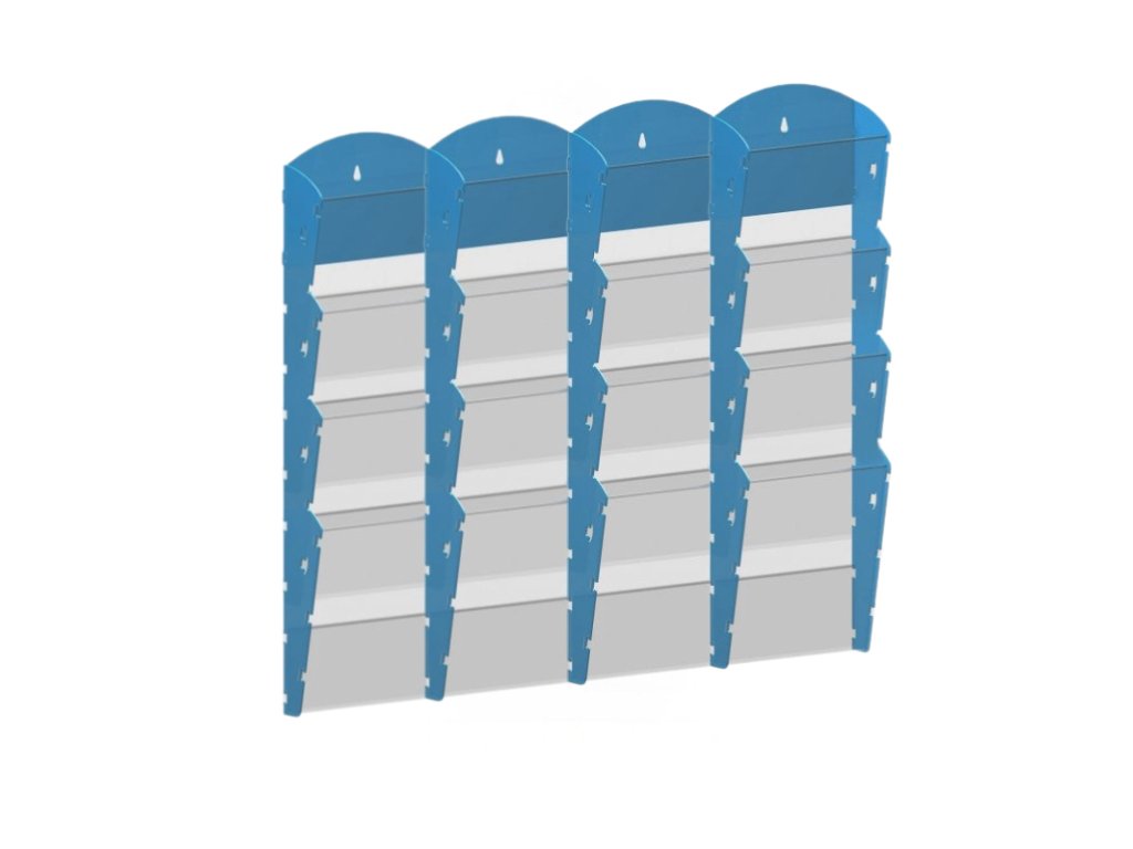 Nástěnný plastový zásobník na prospekty - 4 x 4 A5, modrý