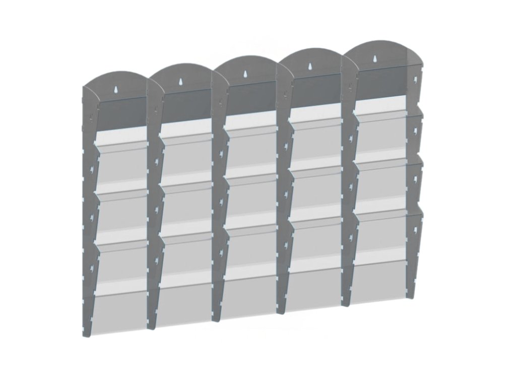 Nástěnný plastový zásobník na prospekty - 5 x 4 A5, šedý