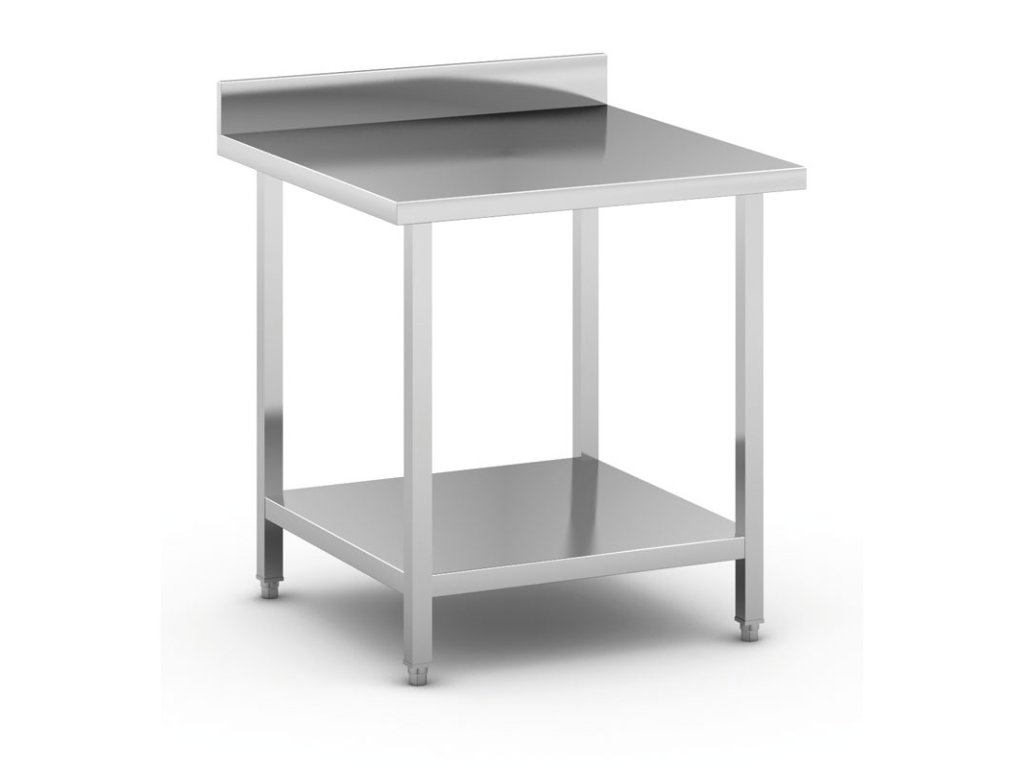 Nerezový pracovní stůl s policí a ohrádkou, 800 x 800 x 850 mm